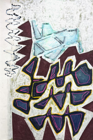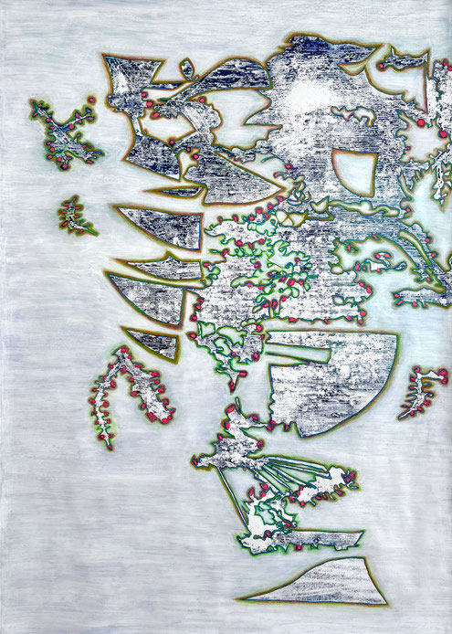 nicht vollkommen abstrakte bildgefüge, die im versuch verharren etwas wiederzugeben, ohne es abzubilden, aber trotzdem dafür einzustehen. schramms blätter sind gezeichnete abstraktionen von